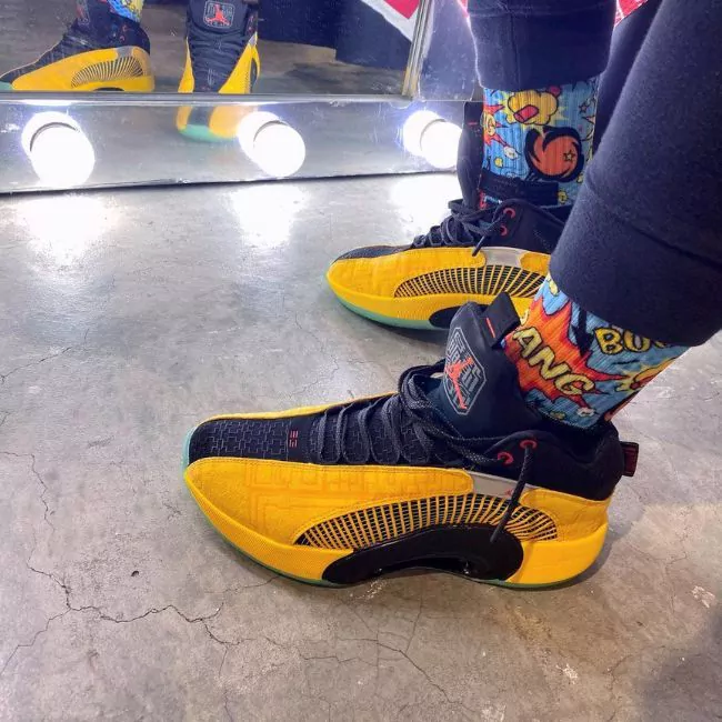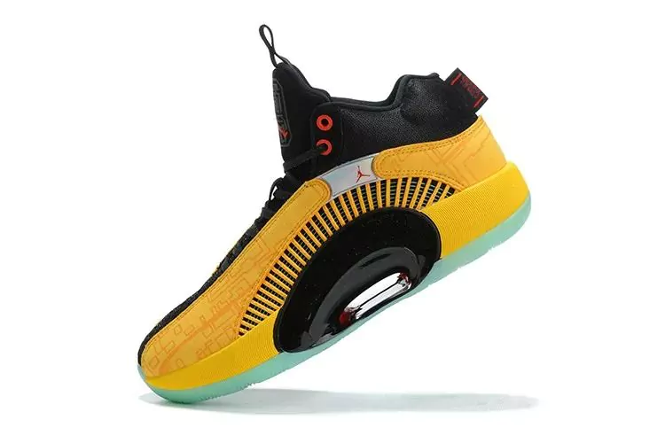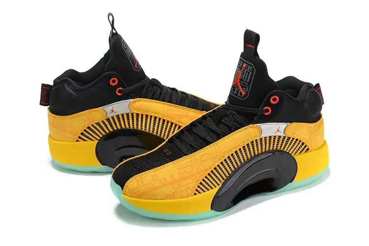 As 'Dinastias' da Air Jordan 35 celebram o 600º aniversário da Cidade Proibida, um palácio imperial das dinastias Ming e Qing, localizado no centro de Pequim. O design do tênis é inspirado na arquitetura do complexo do palácio, com sobreposições de camurça inspiradas em telhados amarelos e detalhes em vermelho que dão um toque de pilares, portas e janelas carmesins. A placa de assinatura Eclipse do tênis é processada em um acabamento preto brilhante, separando a sola intermédia amarela e a sola translúcida em jade.