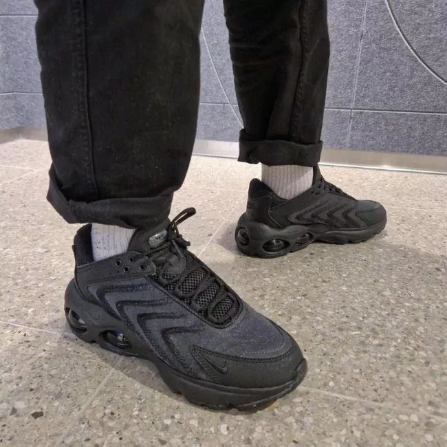 Uma mistura furtiva de tons “preto” e “antracite” em sua parte superior inspirada no Air Max Tailwind. Unidades únicas com bolhas Air Max ampliadas também assumem o arranjo oculto, permitindo versatilidade o ano todo. O material Cushlon na entressola também opta por uma aparência monocromática, trabalhando em conjunto com o waffle e outra tração padronizada sob os pés para proporcionar um passeio confortável e confiável para os usuários.